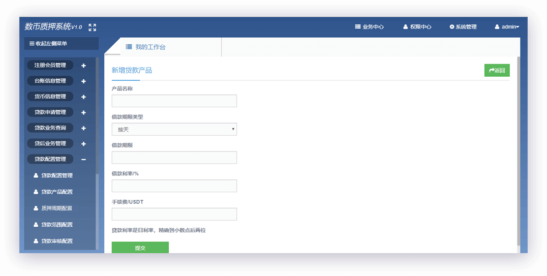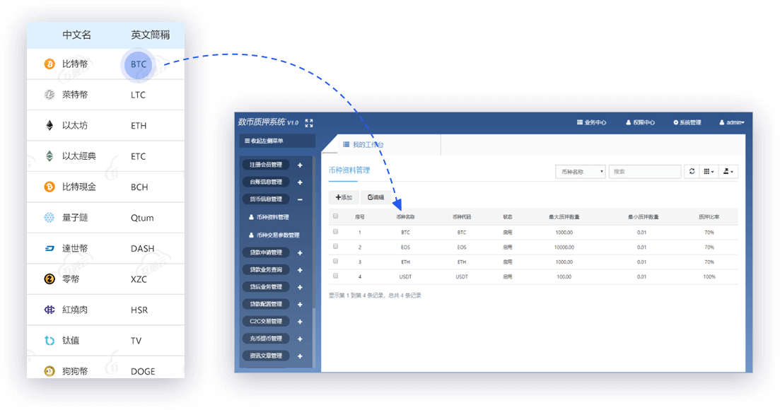 基于數(shù)字貨幣變幻莫測的特點(diǎn),系統(tǒng)設(shè)計(jì)了針對不同幣種可配置不同的質(zhì)押率。降低風(fēng)險(xiǎn),保證平臺和質(zhì)押人的收益。