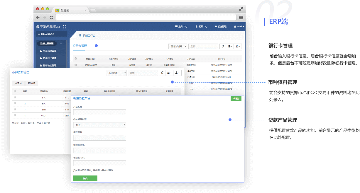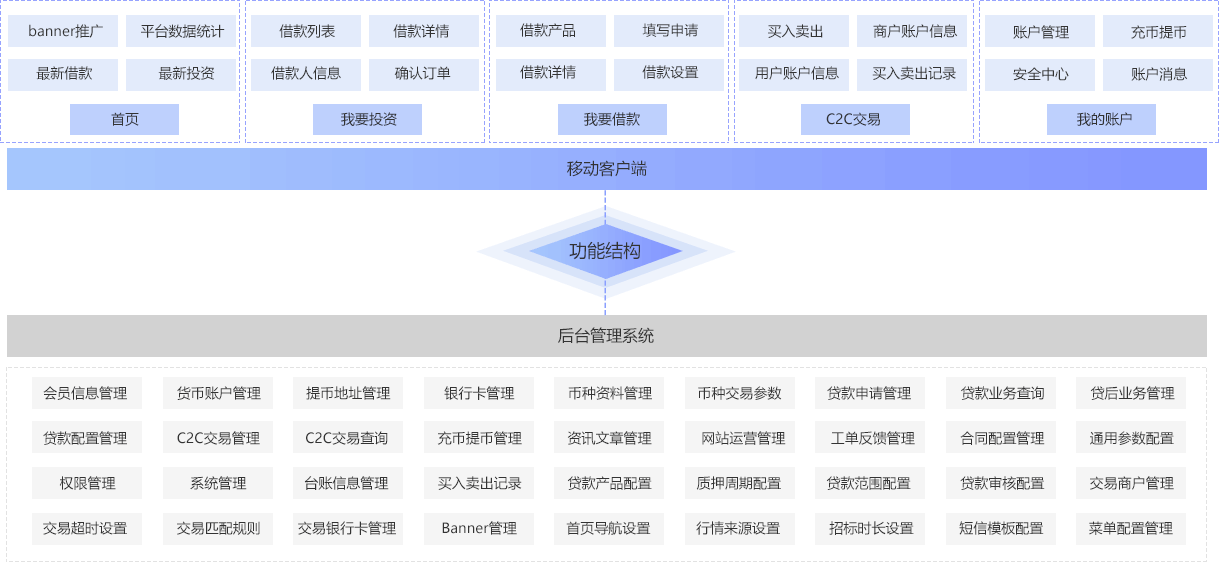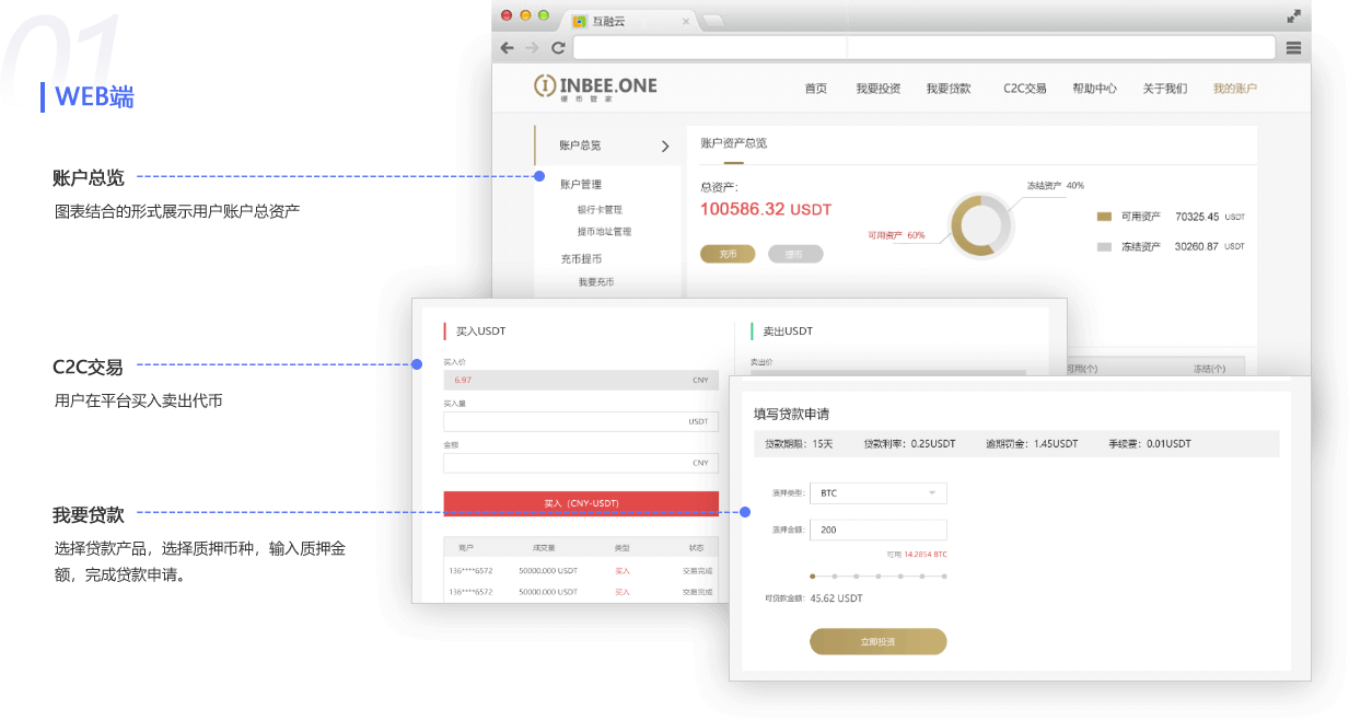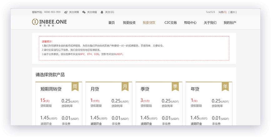 互融云數(shù)字貨幣質(zhì)押借款C2C平臺系統(tǒng),由我要投資、我要借款、C2C交易、首頁和賬戶中心五個(gè)核心模塊組成。 用戶可依據(jù)借款需求自主選擇借款產(chǎn)品發(fā)起借款申請。投資人能夠清晰明了的看到所有招標(biāo)借款信息以及借款人在本平臺的質(zhì)押狀況。投資人投資之后,該筆借款達(dá)成,同步生成借款合同保證雙方的權(quán)益。