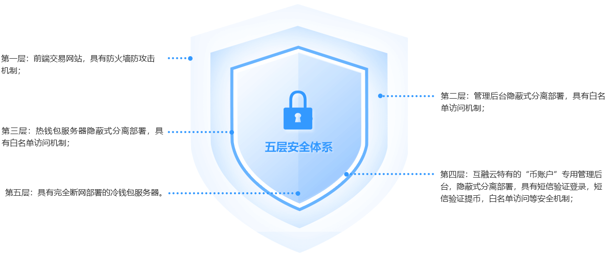 多層級用戶數(shù)據(jù)加密、動態(tài)身份驗證,多級風(fēng)險識別控制,保障交易安全;錢包多層加密,離線冷存儲,資金第三方托管,層層環(huán)扣,確保資金安全