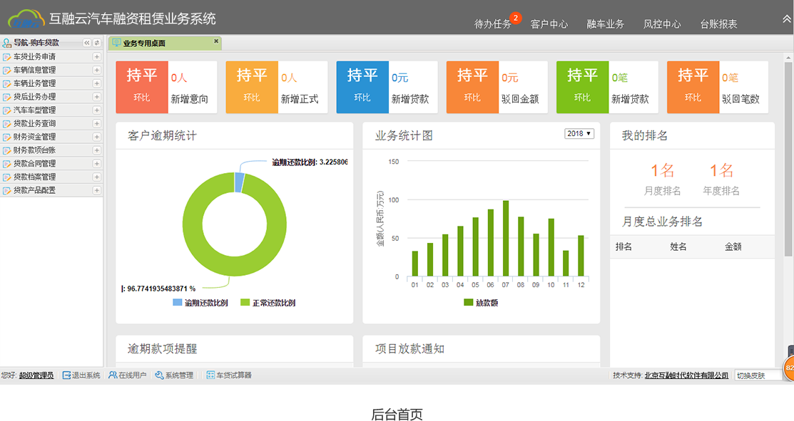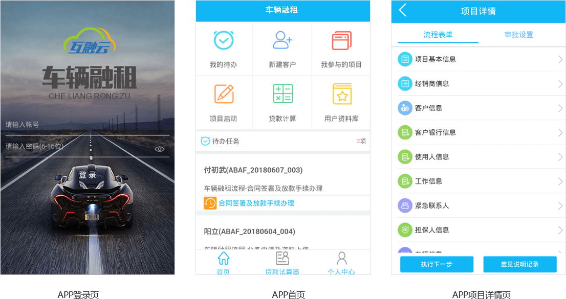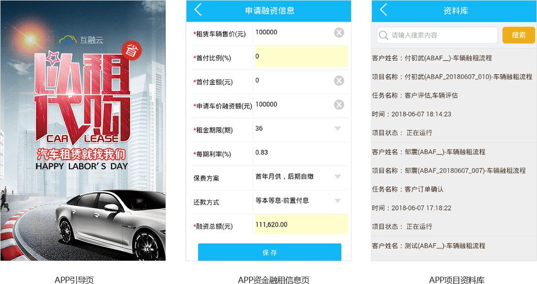 互融云整合了汽車融資租賃整個(gè)業(yè)務(wù)流程,包括租賃申請(qǐng)、租賃審批、租后管理、租賃車輛管理、客戶登記、合同管理、 車輛跟進(jìn)記錄等全流程管理。真正實(shí)現(xiàn)了融資租賃公司的全自動(dòng)化流程管理,強(qiáng)大的信息采集、風(fēng)險(xiǎn)預(yù)警、項(xiàng)目質(zhì)控、 資產(chǎn)管理等功能方便了車輛融租公司更好管控業(yè)務(wù)。