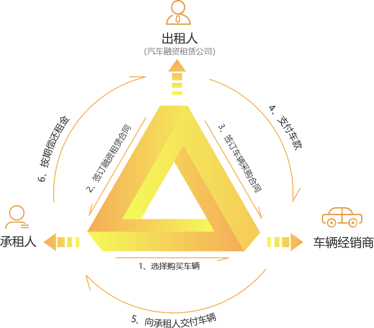 售后回租即承租人將自有車輛出賣給出租人,同時(shí)與出租人簽定融資租賃合同, 再將該車輛從出租人處租回的融資租賃形式。售后回租業(yè)務(wù)是承租人和汽車經(jīng)銷商為同一方的融資租賃方式。