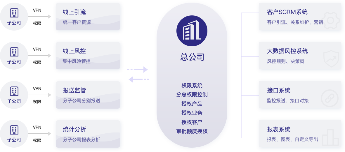 “精準獲客+全流程精細化管理+大數(shù)據(jù)智能風控+三方服務(wù)”成就類金融業(yè)務(wù)全流程的高效、規(guī)范化作業(yè),為企業(yè)提供高效、安全、智能的信息化服務(wù)。