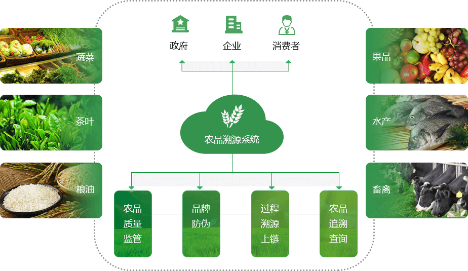 系統(tǒng)主要包括線智慧農(nóng)業(yè)采集平臺(tái)、農(nóng)業(yè)溯源運(yùn)營(yíng)管理平臺(tái)、掃碼溯源終端(小程序、APP),利用區(qū)塊鏈追溯技術(shù)、物聯(lián)網(wǎng)采集技術(shù)和LBS地理、云計(jì)算大數(shù)據(jù)等技術(shù),通過傳感器、通訊網(wǎng)絡(luò)、RFID、防偽標(biāo)簽和二維碼等,為食品建立區(qū)塊鏈的“身份證”,針對(duì)農(nóng)產(chǎn)品從生長(zhǎng)到銷售各環(huán)節(jié)的農(nóng)產(chǎn)品質(zhì)量安全數(shù)據(jù)進(jìn)行及時(shí)采集上傳,數(shù)據(jù)具有不可逆,不可篡改等特點(diǎn),為消費(fèi)者提供及時(shí)的農(nóng)產(chǎn)品質(zhì)量安全追溯查詢服務(wù),為企業(yè)政府提供有效的農(nóng)產(chǎn)品質(zhì)量安全監(jiān)督管理機(jī)制和手段。幫助企業(yè)樹立品牌、政府推動(dòng)地方經(jīng)濟(jì)、消費(fèi)者獲得真正的食品安全。