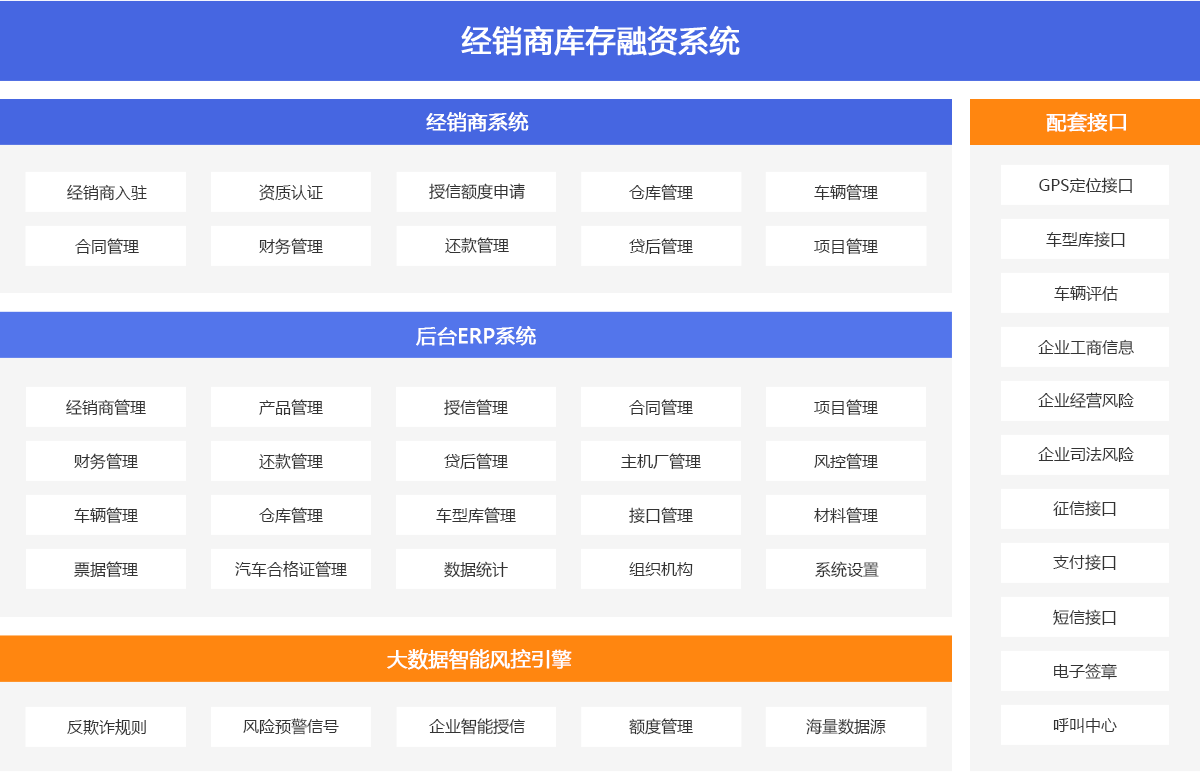 通過對主機廠、經銷商、商業銀行三方業務及操作模式的深入研究,系統在支持差異化產品配置的基礎上,通過技術手段做到了業務流程一致性,業務管理模式標準化,統一業務審批標準。