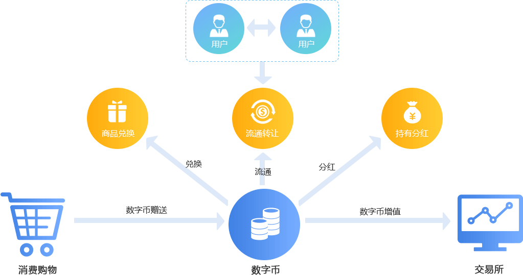 對(duì)于消費(fèi)者可以通過(guò)購(gòu)物挖礦、邀請(qǐng)獎(jiǎng)勵(lì)等獲取數(shù)字幣的資產(chǎn),通過(guò)數(shù)字幣的資產(chǎn)價(jià)值,鼓勵(lì)消費(fèi)者參與電商平臺(tái)資產(chǎn)投資并從中產(chǎn)生價(jià)值。