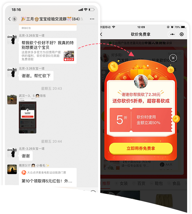 階梯砍價,前期砍的快增加用戶傳播的信心