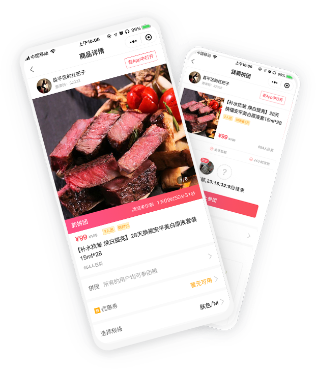 擁有限時拼團、社區拼團,團著買更便宜,引爆流量