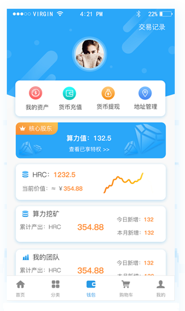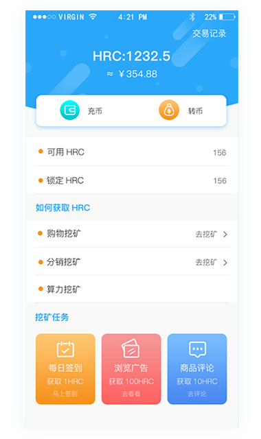 互融云數字貨幣電商系統,是以商城為載體,結合區塊鏈分布式賬本、智能合約技術、以及數字貨幣支付的天然性,與傳統電商支付 場景完美融合,打造集 數幣購物、積分(代幣)發行、挖礦等功能于一身的區塊鏈電商系統。系統支持多種 數字貨幣支付,如比特幣、萊特幣、以太坊、泰達幣等主流幣,可結合互融云自主開發的強大的行情Api, 為用戶提供代幣精確市場信息,確保實時交易幣值。同時將傳統商城積分,與區塊鏈技術結合升級為購物挖礦、分銷挖礦、任務挖礦、 算力挖礦等多種方式盤活傳統積分,讓積分不再“雞肋”。