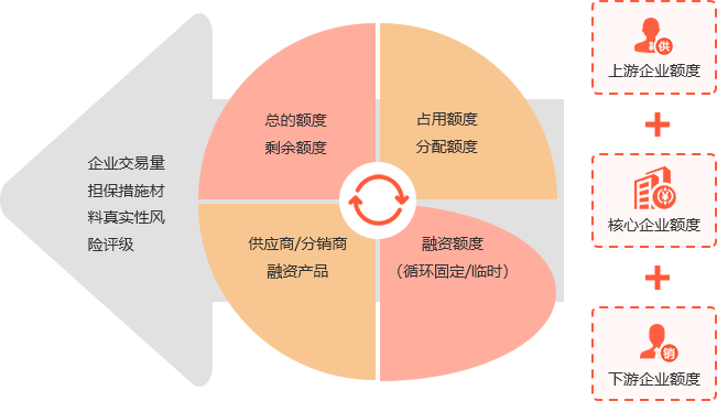 根據核心企業交易量、擔保措施、材料真實性等多種方式進行風險評級,對授信額度進行審批,包括核心企業授信、上下游客戶授信、可以占用自身額度,又可占用核心企業授信,多種組合額度又相互關聯。