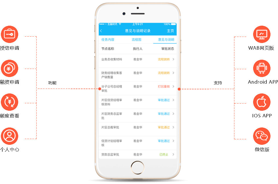 ? 標準線上業務、風控、貸后操作流程,高效便捷。