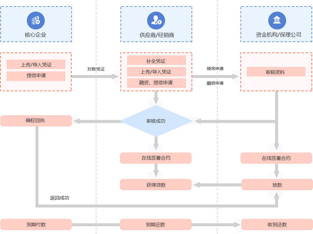 ? 依托核企信用幫助供應商快速融資,優化供應鏈體系。
