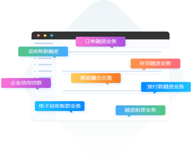 針對供應鏈多行業的特性,我們推出了不同場景下的業務系統,除了開展應收賬款、訂單融資,存貨融資等相對傳統供應鏈融資業務之外,也可以通過升級開展票據撮合交易、預付款業務、企業信貸、電子應收賬款業務、融資租賃等多種業務,通過組合的業務模式,更大化的滿足客戶的需要