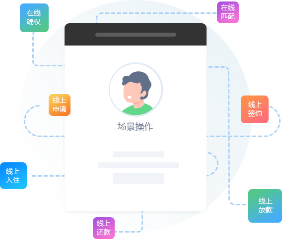 系統支持多種業務模式,場景化設計,全流程線上操作,多種還款方式,產品靈活配置,征信、電子簽章等配套接口成熟