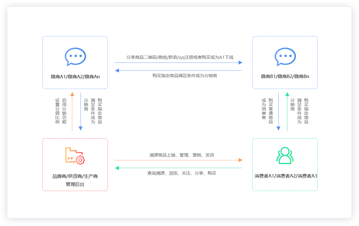 互融云微商分銷溯源是為傳統零售企業、傳統電商、微商等設計的一套完整的可溯源、移動電商分銷方案。 打造線上分傭+線下分銷相結合的商業模式,幫助商家快速獲取消費者信任,搭建分銷商城,招募分銷團隊, 結合多種激勵體系,形成忠實的粉絲群,幫助企業快速轉型,旨在幫助商家快速賣貨,迅速積累客戶資源。